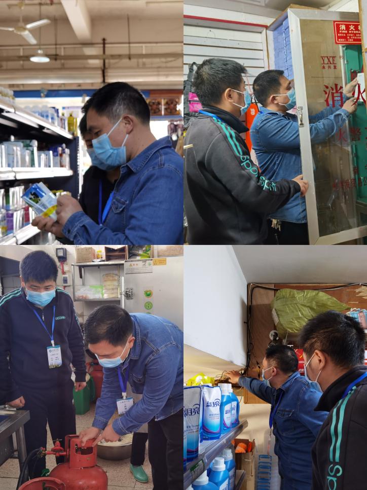 同时,检查组对食堂主食仓库、食品卫生安全检查,蒸饭间线路、载货电梯运行安全检查,以及疫情防控期间的清洗消毒检查;对校内商铺售卖的商品质量抽查,商铺内线路、液化气进行细致检查,以及治安综合办有关人员及安保人员对校内商铺进行了消防安全隐患专项检查。重点对燃气使用是否安全、有无灭火器材及灭火器是否过期等进行逐一检查;对车队的车辆零部件、设备设施进行检修以及清洗消杀工作进行检查。
