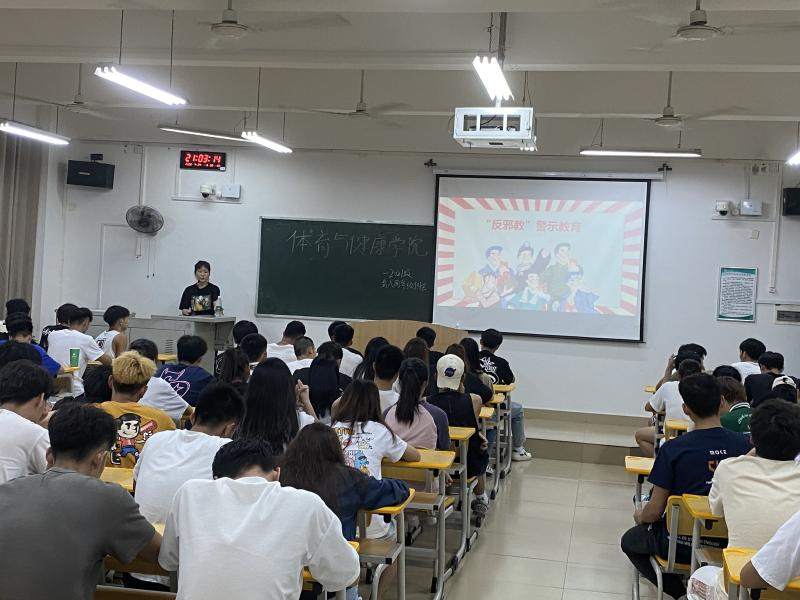 4月24日,体育与健康学院利用周末晚例会组织开展了“崇尚科学,抵制邪教”主题教育。