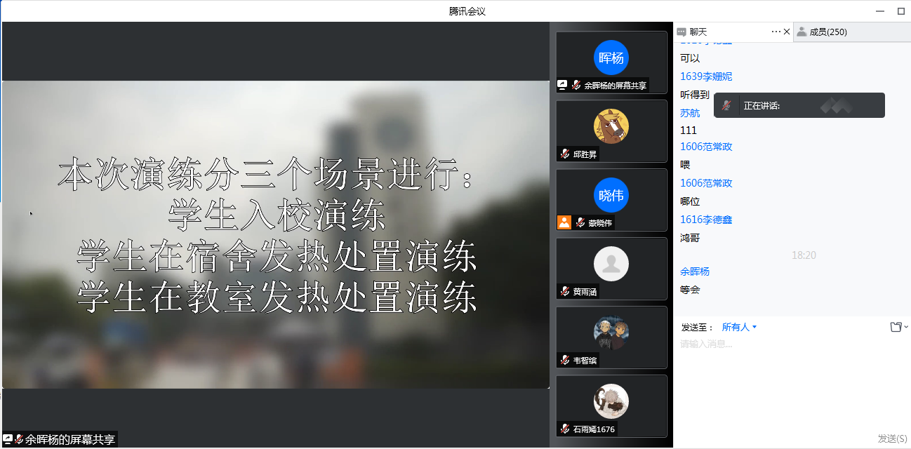 此次疫情防控应急演练工作分为两个环节,第一个环节是分场景、分模块开展实地演练活动。实地演练的工作人员来自全体辅导员、在校不同年级学生代表,实现教育对象的全覆盖。实地演练开始前,陈玉婵副书记召集相关负责拍摄、演练的师生说明此次疫情防控应急演练的重要性,并对演练要求做了详细说明。通过与后勤保卫处门岗及医务室沟通,共完成了学生入校、学生公寓寝室学生发热处置、学生在教室发热处置三个场景的演练。通过实地演练,强化师生应急处置意识。第二个环节是各年级辅导员组织学生学习《高等学校新冠肺炎疫情防控技术方案(第五版)》《广西师范大学漓江学院新冠肺炎疫情防控应急处置流程》(漓院新冠防指[2020]47号)以及《桂林学院新冠疫防应急处置演练脚本》,同时全体学生观看学习了由2019级数字媒体学生团队完成的疫情防控应急演练视频,通过朋辈教育实现学生自我教育的目的。