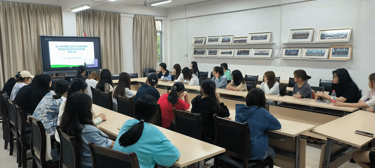 5月11日下午,设计学院组织师生代表在嘉善楼213教室聆听绿色学校创建活动之生态文明教育专题讲座,讲座围绕主题“深入学习领会习近平生态文明思想,争当生态环境保护的倡导者和践行者”展开,由桂林市生态环境局负责人陈亚民同志主讲。