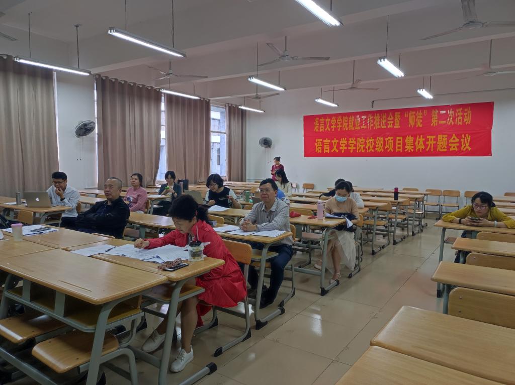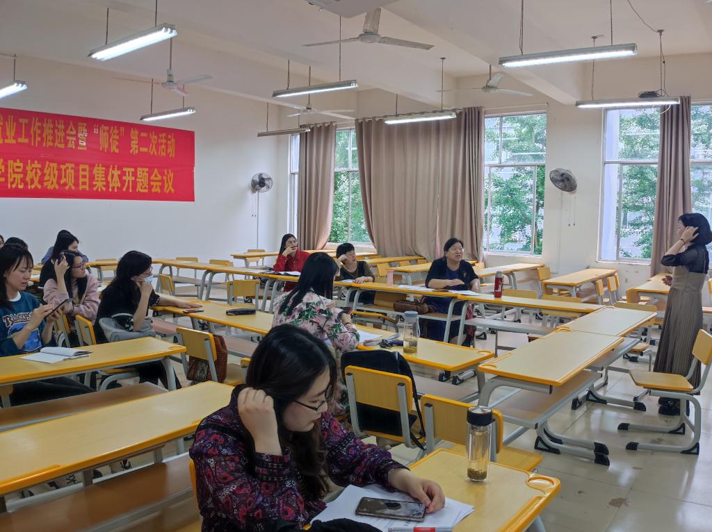语言文学学院积极响应学校教学科研处对立项课题质量保障及经费使用的要求,助力中青年教师教学科研能力提升,于5月11日下午举办了“现代师徒制”第二次交流活动暨教学科研项目集体开题答辩。