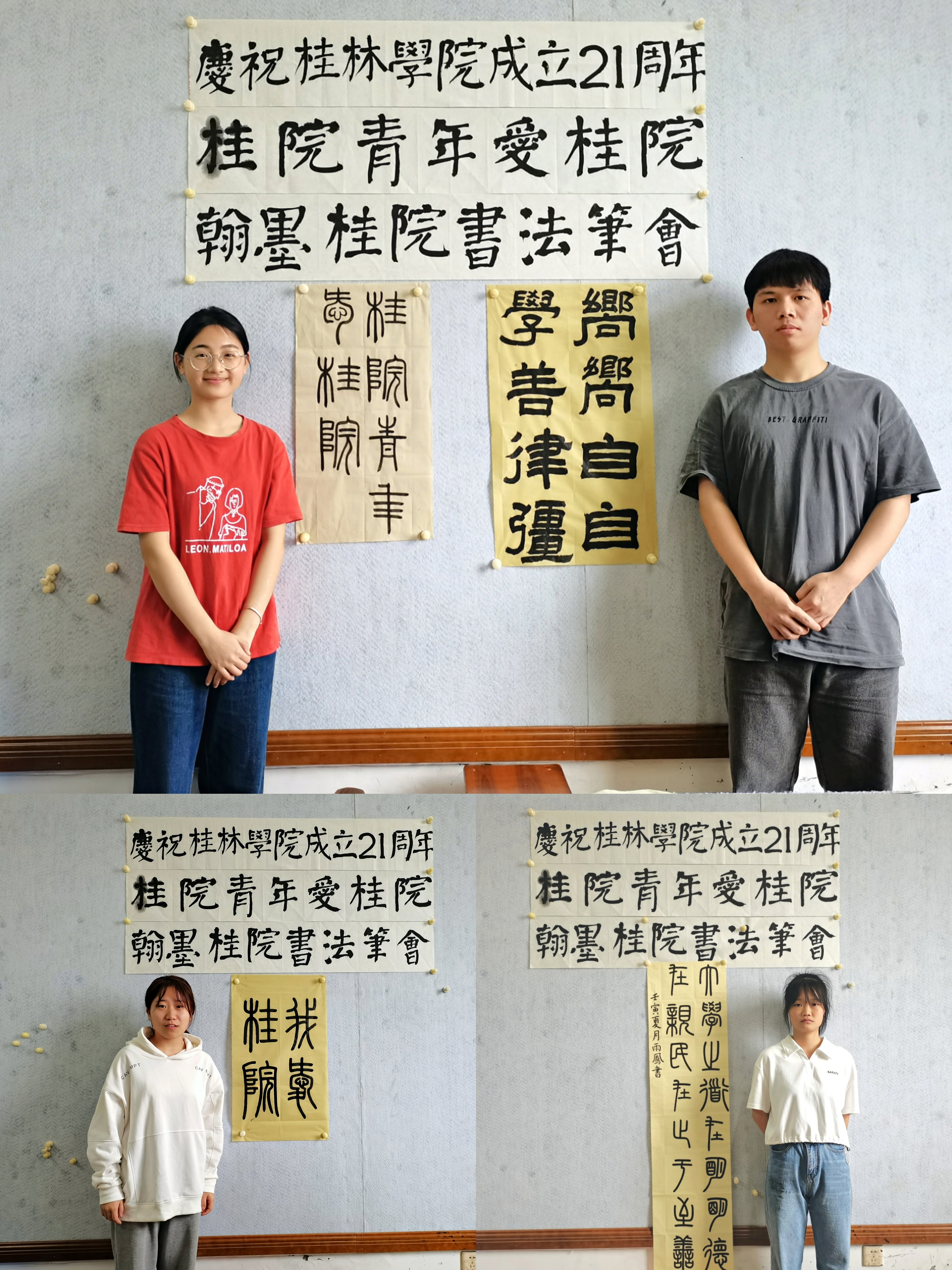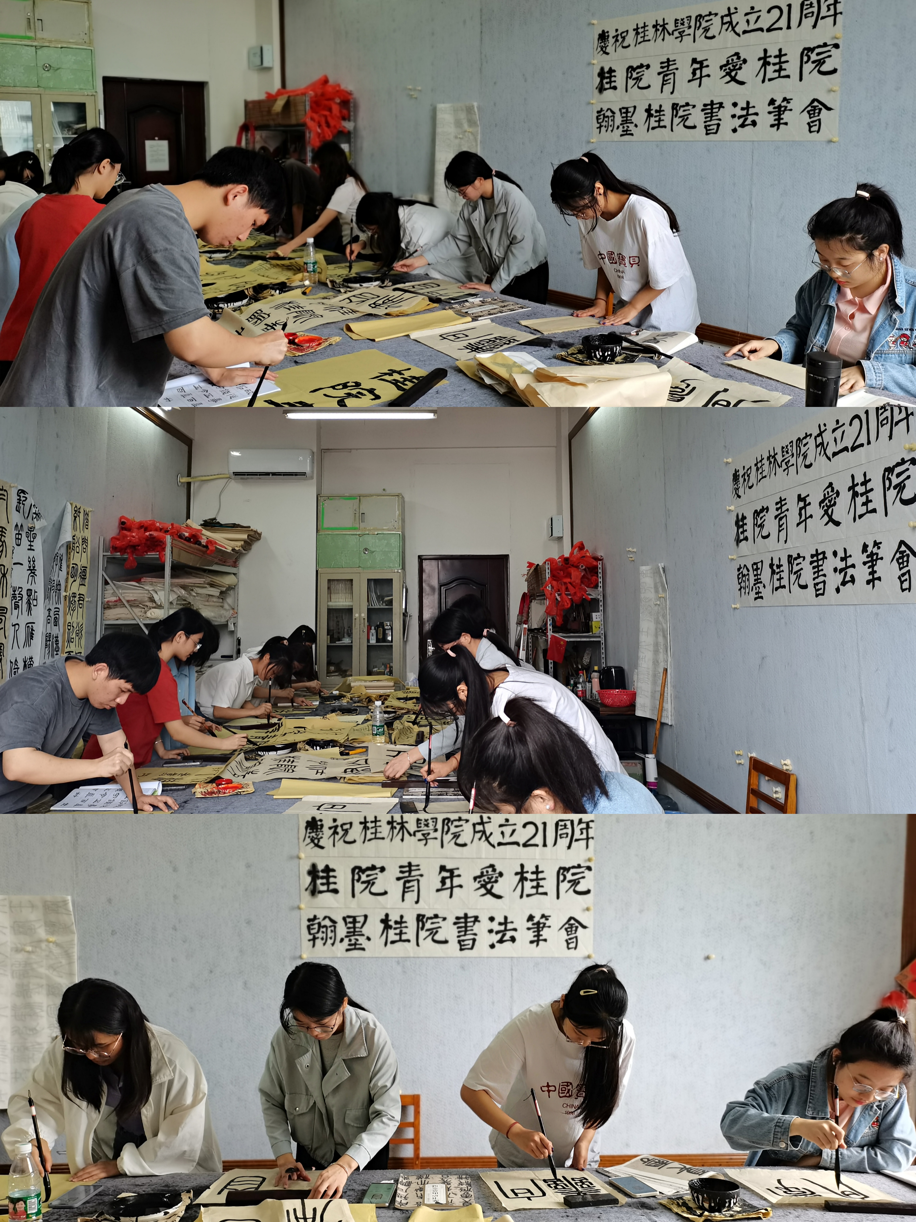 语言文学学院半步斋书画社以庆祝学校建校21周年为契机,举办翰墨桂院为题的书法笔会,将着力打造传统书法文化的学习与交流平台,丰富校园文化生活,弘扬我校“向学、向善,自律、自强”的校训精神。