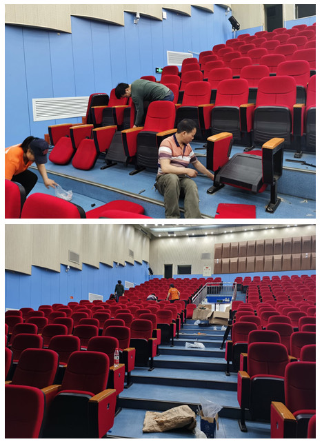 为确保师生安全,满足使用需求,并有效解决场馆座椅、实验实训室凳子的维修、更换问题,校领导刘文革,中心负责人代国勇通过实地检查,联系家具厂家,经过一周的现场维修、更换,弘善讲堂所有损坏的观众座椅和实验实训室的凳子已全部维修、更换完毕并投入使用。