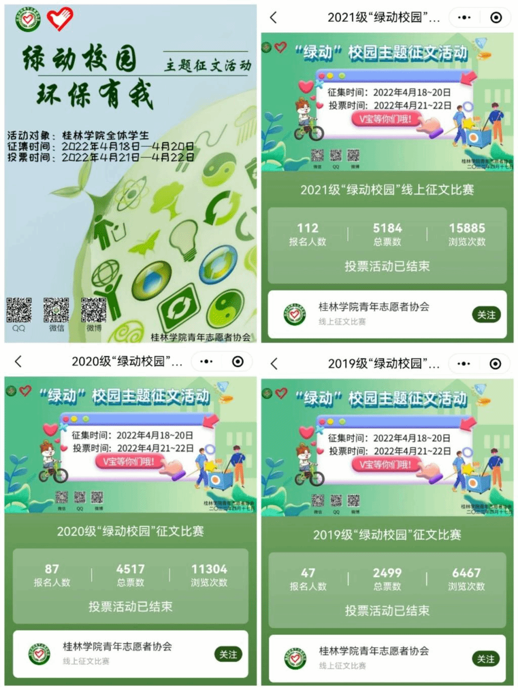 为了加强同学们的环保意识,树立正确的环境价值观和环境道德风尚,迎着和煦的春风,校青协于4月18日至22日在校园内开展了“绿动校园,环保有我”为主题的征文活动。同学们以“我是青年志愿者,我可以为绿色校园…”为主题,讲述自己的绿色生活故事,分享自己的绿色心路,交流经验心得,并附上自己所拍摄的与“绿色校园”有关的照片。通过此次征文活动,让同学们在看到桂院美景的同时也增强了环保意识,进一步传播了保护生态的绿色理念,充分动员了广大桂院学子自觉投入到生态文明建设中。