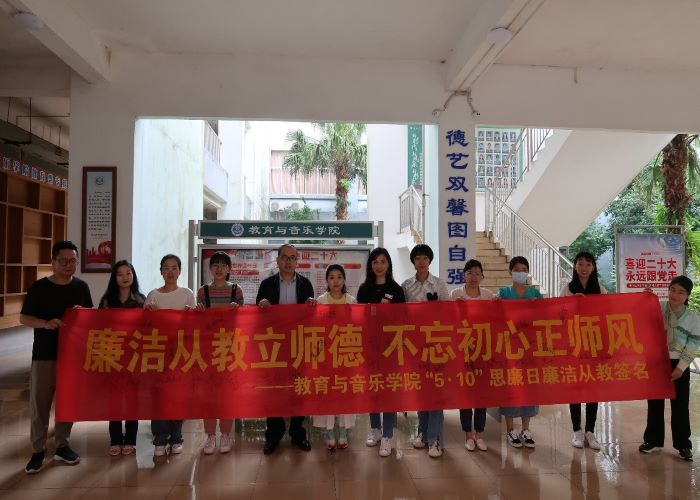 为了响应2022年全区教育系统全面从严治党暨清廉学校建设动员会议部署,落实《桂林学院大力推进清廉学校建设实施方案》,5月26日,教育与音乐学院在嘉善楼举办“廉洁从教立师德,不忘初心正师风”主题签字活动。参加本次主题活动的有教育与音乐学院全体教职员工。