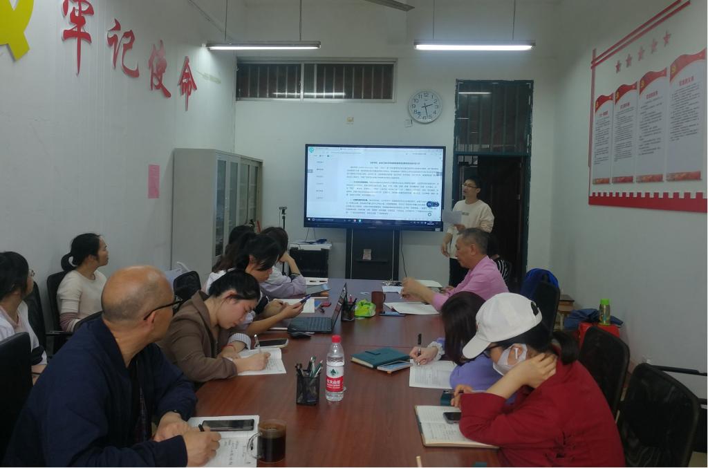图:理工学院教工党支部书记李勇刚带领大家学习文件精神