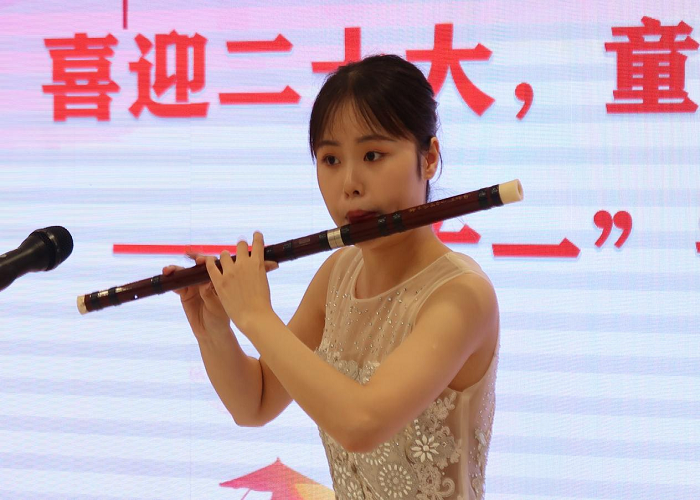 随后,教育与音乐学院与广西师范大学音乐学院的师生联合为小朋友和家长送上了一台歌舞表演,有男女声独唱、唢呐演奏、笛子独奏、群舞、三人舞等,师生们深情的演绎、精彩的表演,赢得了现场观众的热烈掌声和阵阵喝彩。为了回应大哥哥、大姐姐们的演出,穿山街道的小朋友也表演了国学朗诵,他们穿汉服、行鞠躬礼,有模有样,非常可爱。