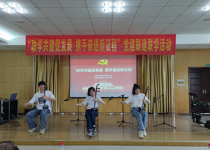 教育与音乐学院的师生和国能永福发电公司的员工联合开展了一场小型文艺表演。桂林学院师生献上了男女声独唱、笛子独奏、二胡齐奏、唢呐独奏等精彩节目,发电公司表演了三句半、诗朗诵、电声乐队演奏演唱等。