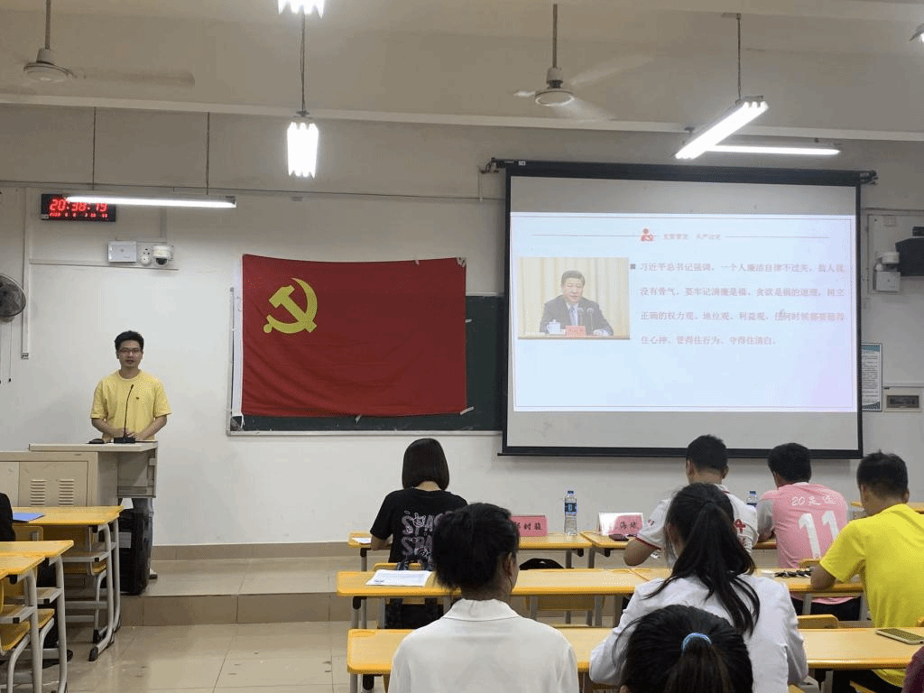 6月8日晚,体育与健康学院在至善楼1217教室开展了以廉洁教育为主题的2022届毕业班党员在校“最后一节”党课,体育与健康学院党总支副书记郭时骏、学生党支部书记陈海斌、学生党支部毕业班党员、全体入党积极分子参加了本次活动。