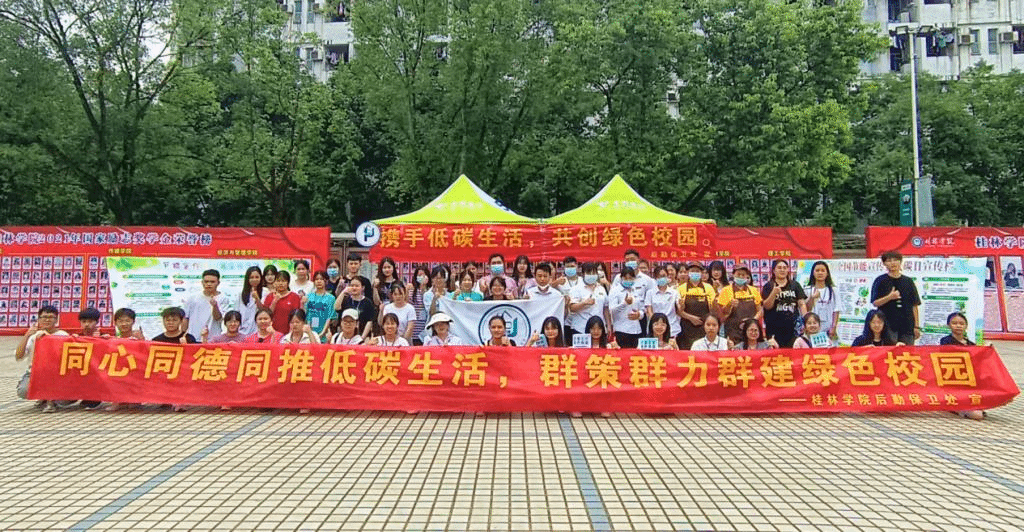 为贯彻落实《自治区教育厅关于开展2022年节能宣传周和低碳日活动的通知》,积极响应国家碳中和目标。结合我校实际情况,6月15日,后勤保卫处在乐善广场组织开展“低碳校园,你我同行”主题宣教活动,此次活动由桂林学院食堂学生管理委员会组织。