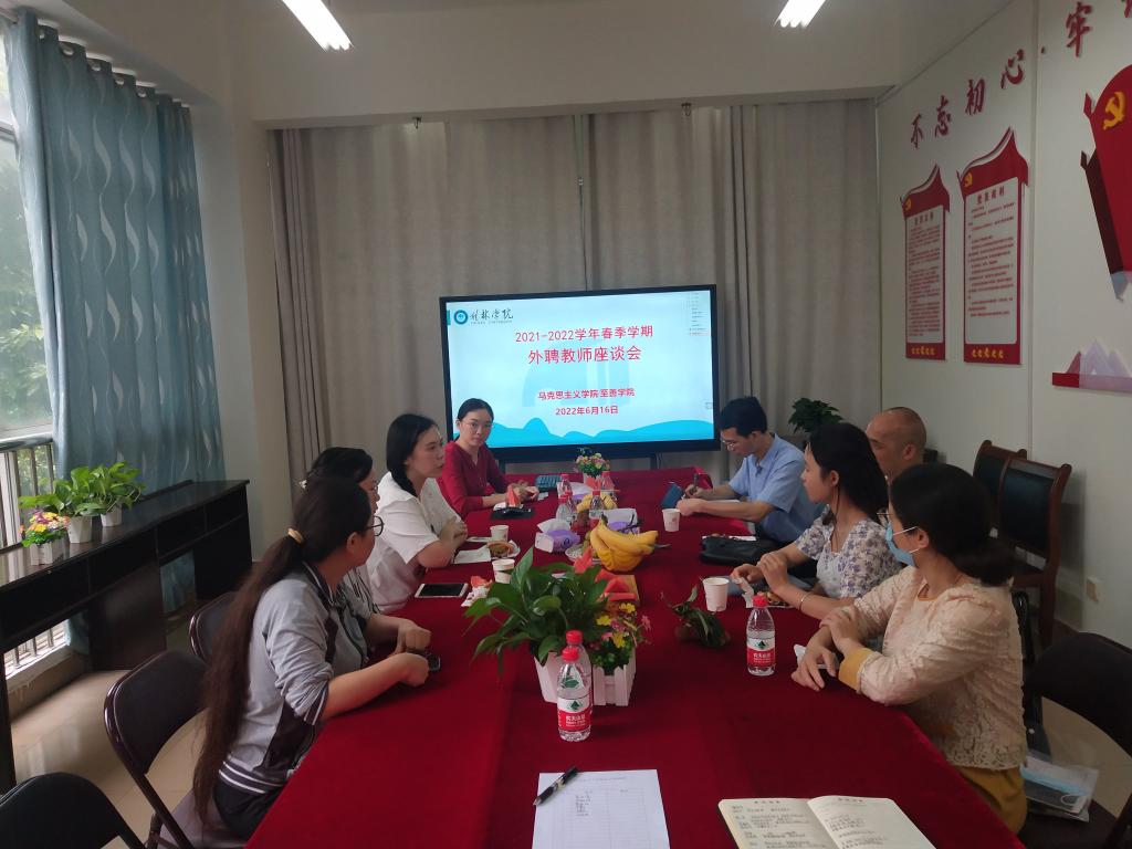 为加强外聘教师队伍的管理,适时总结2022年春季学期外聘教师的工作情况,6月16日下午,马克思主义学院在学院会议室召开外聘教师座谈会。马克思主义学院/至善学院副院长吴秋燕主持会议。外聘教师代表、教研室主任等参加了会议。