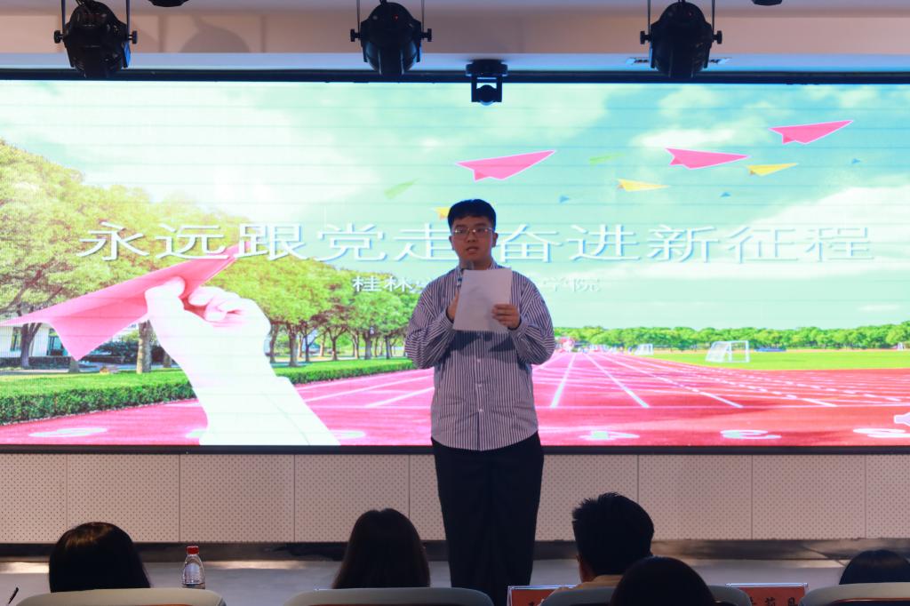 随后,各学院参赛选手依次上台,围绕党史故事、学习经历,讴歌党和国家取得的巨大成就进行演讲。选手们结合自身学习和工作体会,声情并茂,抒发了对党和国家的热爱之情,展现了新时代桂院青年的精神面貌和青春活力,深刻表达了桂院学子踔厉奋进的使命担当,让人不禁热血沸腾。