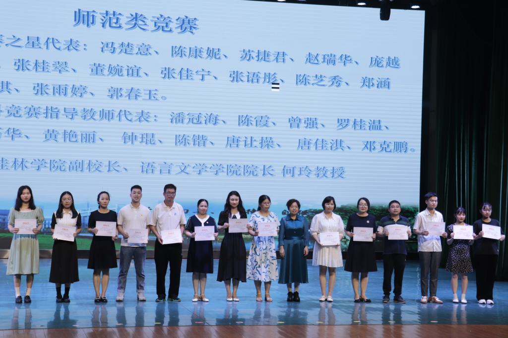 表彰大会上,学院党总支书记江仿宣读2021-2022年学年表彰文件。之后大会依次对学生竞赛之星、优秀学科竞赛指导老师、教师竞赛之星、教学之星与科研之星、教辅之星与创新之星、优秀党员与优秀党支部书记、优秀党务工作者、自治区教学成果奖证书获得者、协同育人先进单位进行表彰。此次大会还对校语委进行了特别致谢,同时对在推进现代师徒制作出突出贡献的孙建元、李陆桂等10位教授表示特别致敬。