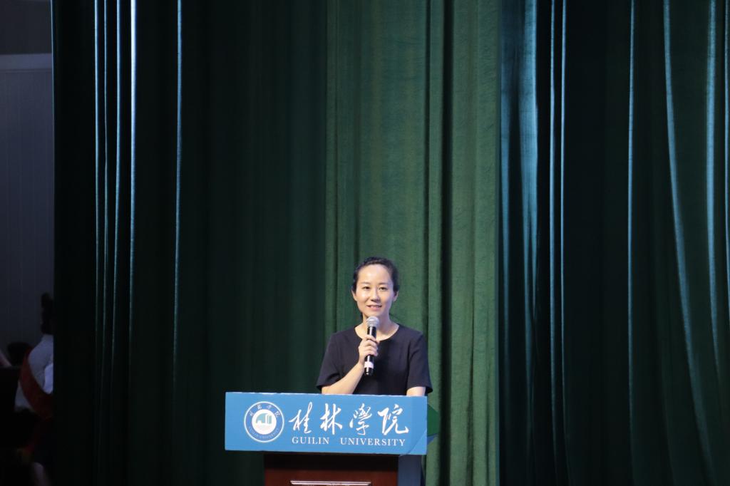 表彰大会上,学院副院长陈锴致辞。她讲到全体党员、广大教职工担当作为、苦干实干,在不同的岗位上忠诚履职、恪尽职守,为学院事业发展作出积极贡献,我们今天聚集在这里树立典型、表彰先进,目的就是要通过这种形式大力营造一种创优争先、追求进步的工作氛围。希望语言文学学院的全体师生,能够在校领导和各级部门的帮助支持下再创辉煌,为桂林学院的明天添砖加瓦。