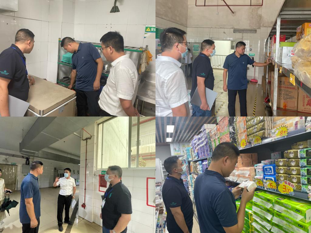 同时,检查组队学校食堂、商铺及消防设施进行安全隐患排查。对食堂仓库规范管理检查、食堂备餐间卫生安全检查、食堂操作间原材料储备检查、食堂液化罐安全检查、食堂食品保质期检查;商铺用电安全检查、商铺消防安全设施排查、商铺食品保质期检查;最后对学生宿舍安全隐患进行排查,针对消防应急灯掉落及线路跳闸等进行安全隐患排查。