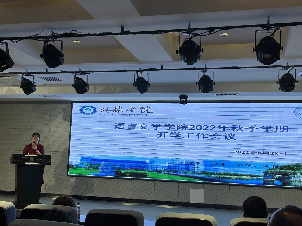 8月28日,语言文学学院在至善讲堂召开全院大会,何玲副校长、江仿书记、张超锋和陈锴副院长出席并做重要讲话,韦微副书记主持,学院根据疫情防控要求采取线上、线下相结合组织全体教师参加开学工作会议。