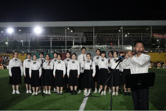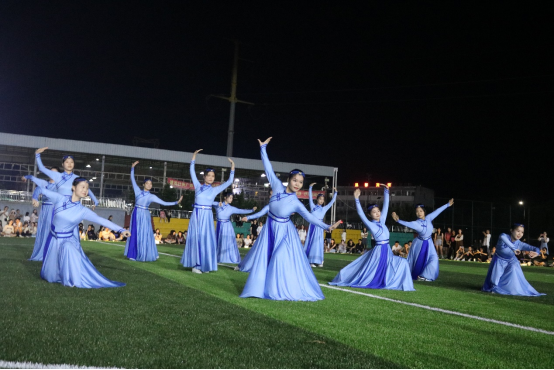 当夜幕降临时,随着同学们陆陆续续的到来,田径场上渐渐热闹了起来。点燃篝火,同学们围绕在篝火旁一齐歌舞,一同赏月,共同迎接欢快的中秋佳节。本次活动设有游园活动和篝火晚会两部分,游园设有“猜灯谜”、“翻滚吧!兔子”、“彩绘团扇”等活动。篝火晚会在由舞行者带来的舞蹈《Bun up the dance》中拉开了序幕,同学们积极参与现场丢手绢、唱歌挑错等各项活动,在欢声笑语中,在皎洁明月下,欢乐与歌舞伴随火苗一起跳动。晚会上,由2021级舞蹈学给同学们带来了蒙族舞蹈,她们美的身姿,沉稳的气质,让我们仿佛置身在草原之上。一样的月光,不一样的情怀,现场气氛轻松欢畅,其乐融融。欢快的兔子舞拉近了同学们之间的距离,让同学们感受到了桂林学院这个大家庭的温暖,缓解同学们的思乡之情。月圆当空照,欢乐齐聚堂,本次篝火晚会在由语言文学学院合唱队所带来的合唱中落下了帷幕,悠扬的笛声和合唱队队员的歌声交织在一起,萦绕在这月圆之夜。