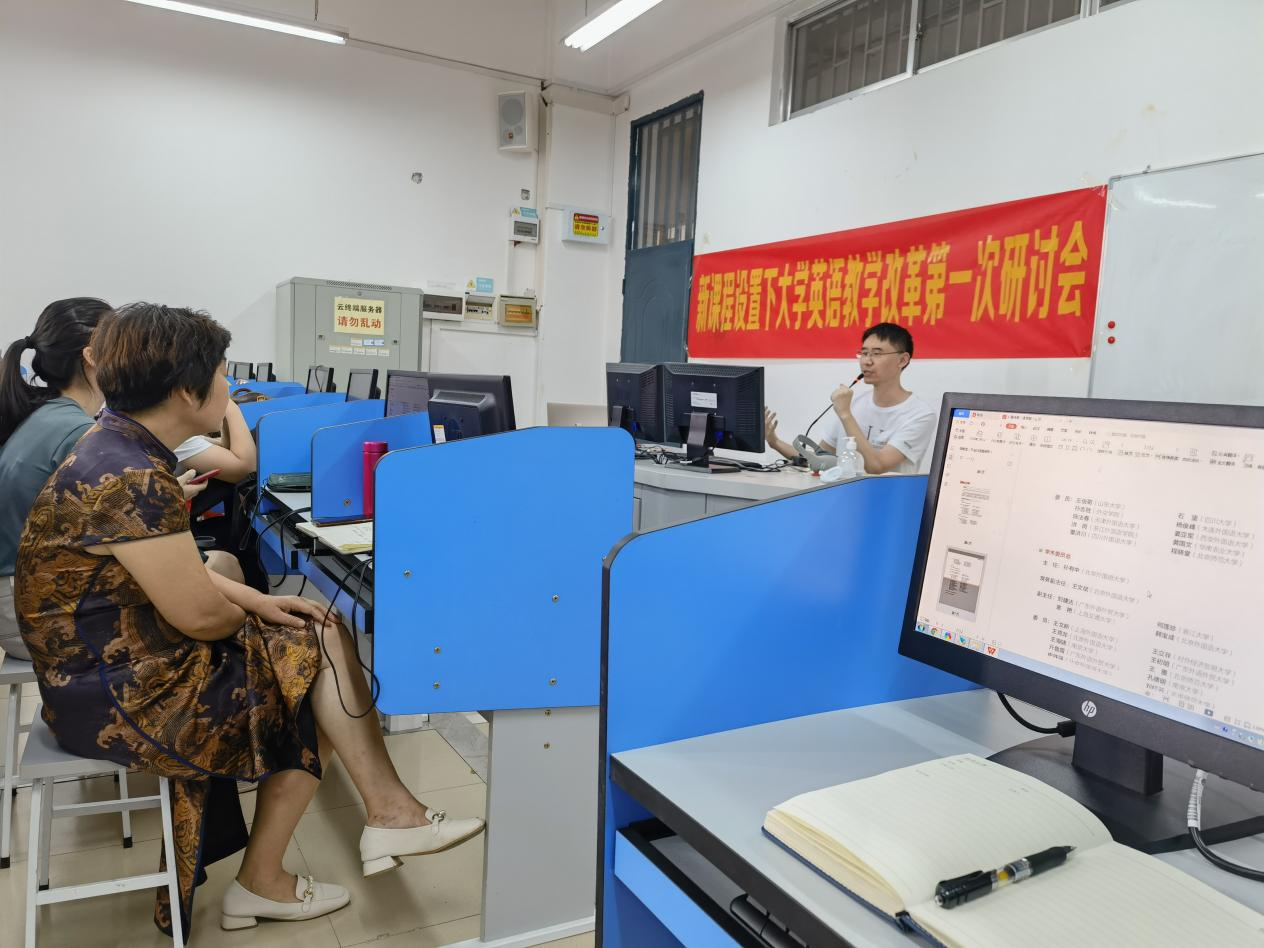 为进一步推进新课程设置下大学英语教学改革,提升大学英语教学质量,9月21日下午,语言文学学院大学外语第一、第二教研部组织召开了大学英语教学改革第一次研讨会,探讨了大学英语教学本阶段存在的问题、面临的挑战和改革路径。学校及学院领导、大学外语第一、第二教研部的教师以及英语专业的部分教师参加了会议,会议由大学外语第一教研部主任秦一涵主持。