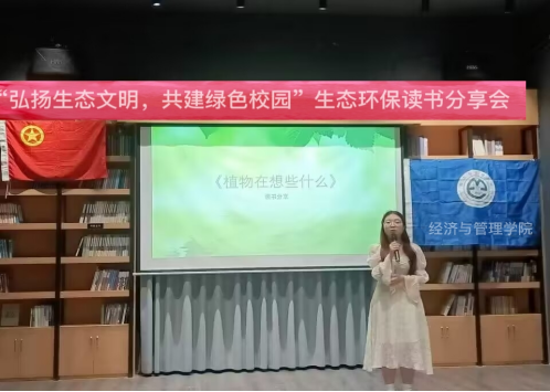 为深入贯彻落实习近平生态文明思想,着力提升全体师生生态文明素养。9月24日晚,经济与管理学院在独秀书房举办“弘扬生态文明,共建绿色校园”生态环保读书分享会。经济与管理学院团总支书记刘竹青、团总支副书记赵玲及书记团主席团成员参加本次活动。