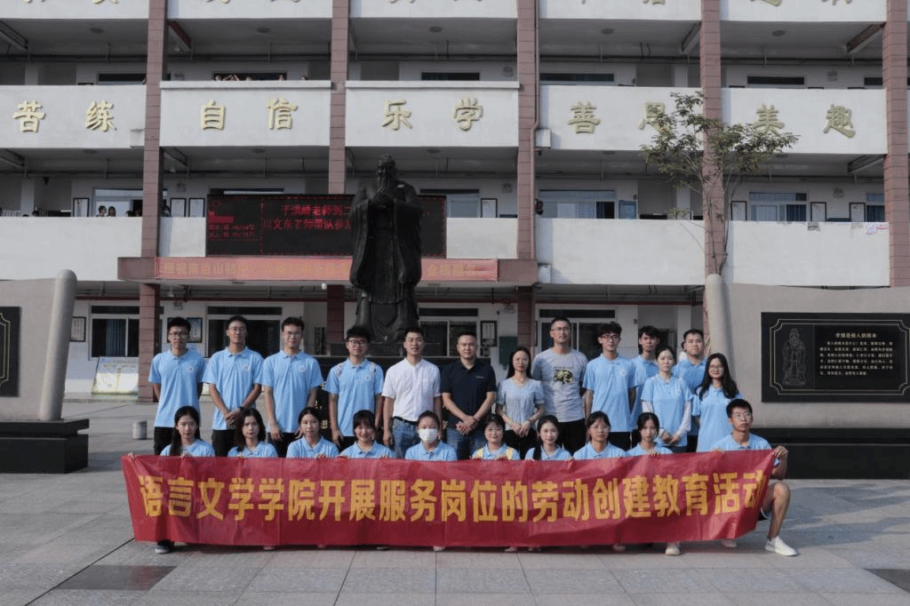 为加强大学生劳动观和劳动技能的教育,引导大学生主动参与到服务岗位实践活动中,进一步落实教育与生产劳动相结合的教育方针。9月27日下午,语言文学学院团总支副书记邓克鹏,辅导员王亮老师、英语教师教育教研室罗桂温老师、中文教师教育教研室朱秀群老师以及学院英语专业、汉语言文学专业、汉语国际教育专业学生代表赴六塘初级中学开展劳动教育活动。