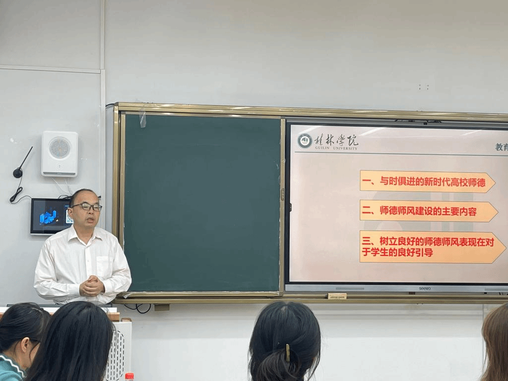 在会上,党总支书记周杰做了题为《新时代新师德》的专题讲座。讲座分为三个部分:第一部分是与时俱进的新时代高校师德;第二部分是师德师风建设的主要内容,第三部分是良好的师德师风表现在对学生的良好引导。周杰书记强调,作为教师,把学生教好,把人培养好就是最大的师德,教育能力和专业技能的缺失就是师德最大的缺失。在讲座中,周杰书记还分析了“师德”和“师风”的关系,他强调,师德师风,“德”字为先,“风”自“德”出、“德”以“风”显,“德”是内在修为,“风”是外在的表现。最后,周杰书记说,师德师风建设与专业技能的提升一样,也是一个不断积累的过程,是一个系统工程,需要学习、思考和在实践中探索和沉淀。只要大家付出真诚的努力,就会收获高尚的师德。