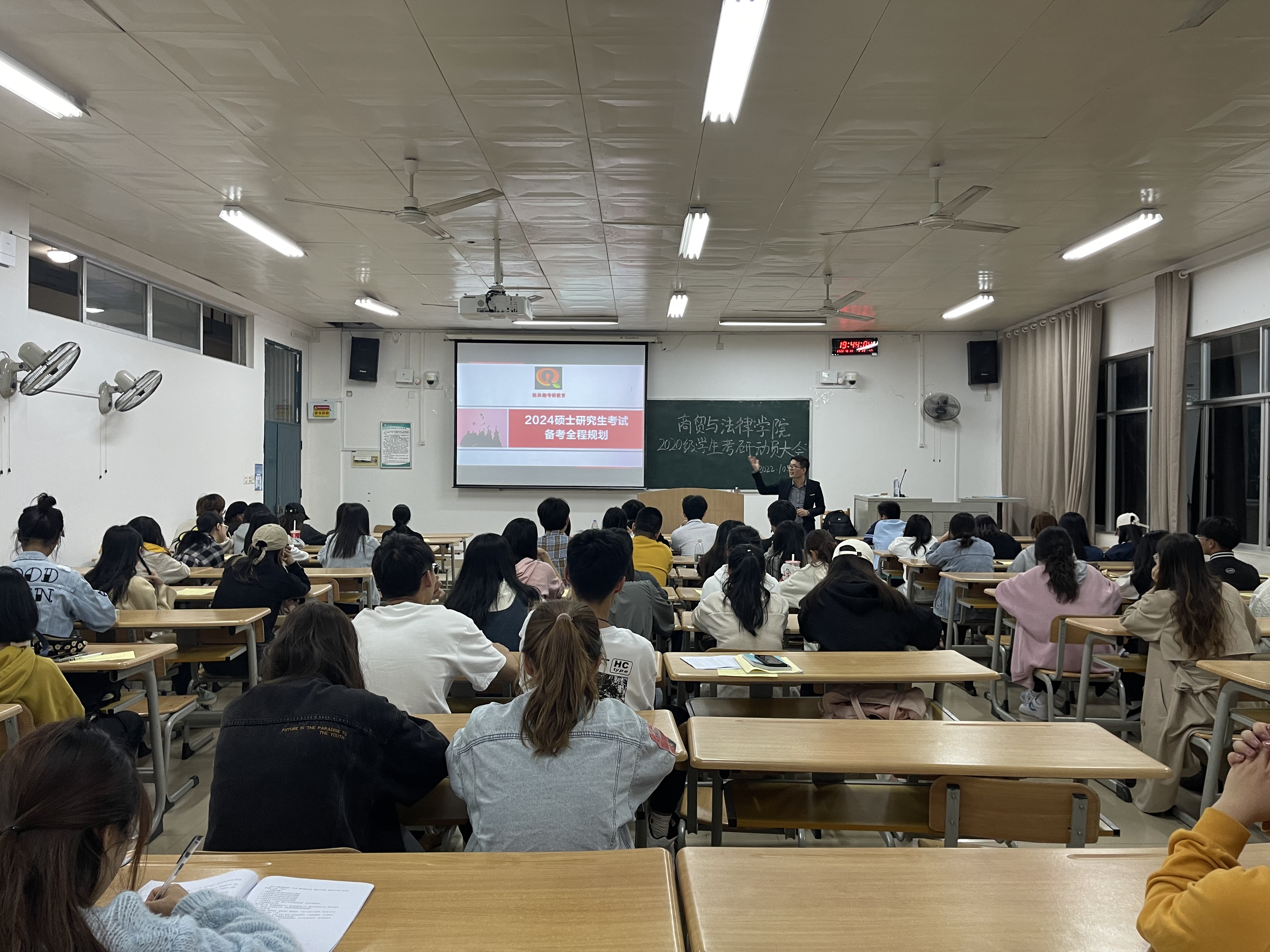 为更好地调动2020级学生考研积极性,帮助学生确立考研目标,增强考研信心,提升考研竞争力,10月30日晚,商贸与法律学院在1406教室举办了2020级学生考研动员大会。本次动员会由桂林趣考研政治辅导教师、哲学博士孟成桢主讲,趣考研教育专业、院校规划老师莫光钰主持,商贸与法律学院辅导员傅秋月、魏晓珺和2020级学生参加了本次大会。
