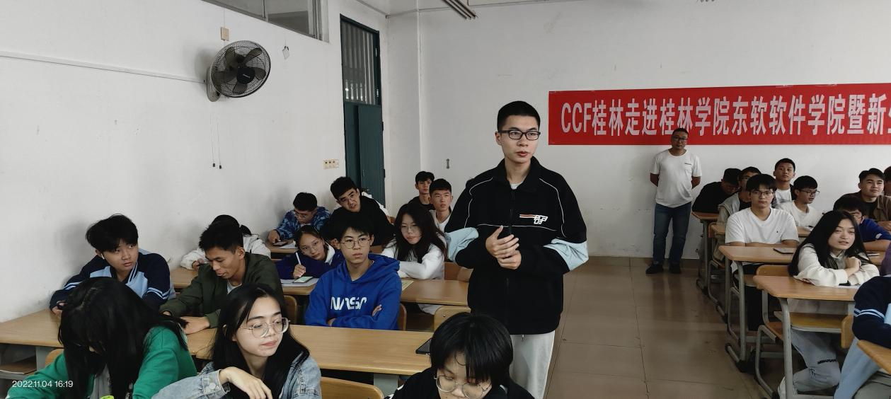 11月4日下午,中国计算机学会(CCF)YOCSEF桂林走进桂林学院理工学院/东软软件学院,为2022级软件工程专业新生带来了精彩报告,并与现场同学进行了深入交流。此次活动邀请了广西教育系统网络安全监测中心副主任、柳州市大数据智能处理与安全重点实验室主任、CCF YOCSEF桂林主席王欢博士作为特邀报告嘉宾。