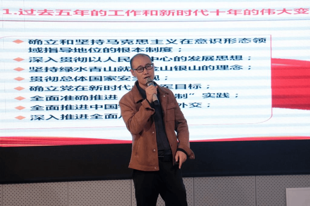 马克思主义学院马俊涛老师正在讲解党的二十大精神内容