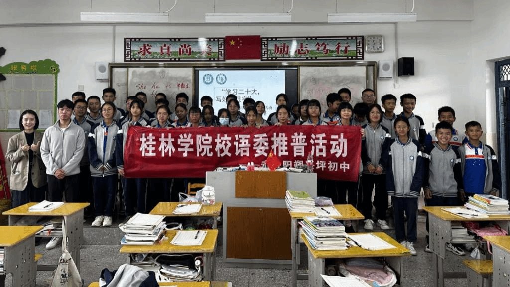 为深入学习宣传贯彻党的二十大精神,同时全面落实习近平总书记关于教育的重要论述和全国语言文字工作会议精神,进一步加强国家通用语言文字的推广普及,服务乡村振兴战略实施。11月14日上午,学校语言文字工作委员会前往阳朔县兴坪镇初级中学开展“乡村振兴对口支援”推普活动。