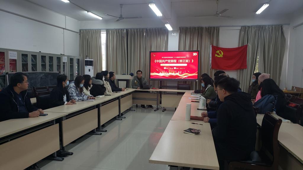 12月6日下午,城市设计学院教工党支部在嘉善楼艺术工厂213会议室举行“强基固本筑堡垒,凝心聚力促发展”主题党日活动,开展学习宣传贯彻党的二十大精神专题党课——《学习解读党的二十大对党章作出的修正》,党课由教工党支部书记葛之刚主讲。