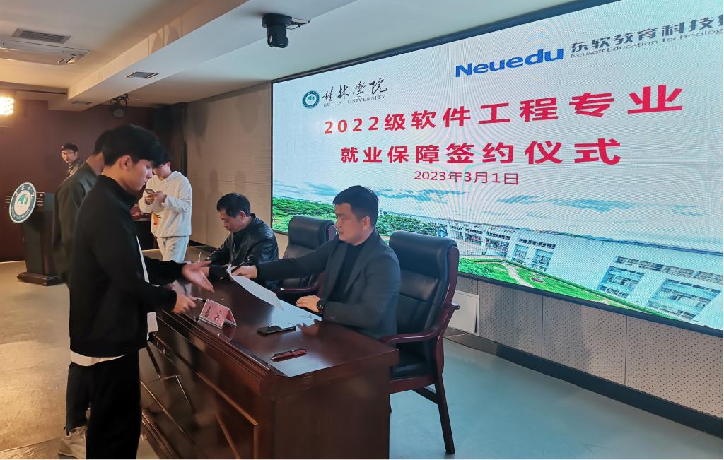 最后由东软教育科技集团华南区总经理乐杰与理工学院院长李红波为全体同学们逐一签署就业保障协议。通过此次活动,校企双方本着优势互补协同共进的原则,进一步搭建人才培养的合作平台,拓宽大学生就业渠道,实现共赢发展。