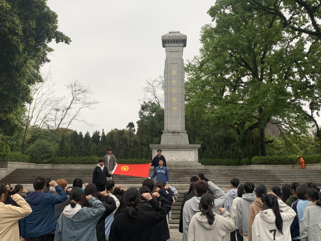 在陈光烈士纪念塔前,师生们怀着崇敬的心情向革命烈士纪念塔三鞠躬并献上白花,以表达对革命先烈深切的哀悼和无尽的敬仰。在庄严肃穆的烈士纪念碑前,全体成员高举右拳,面向团旗庄严宣誓,“我志愿加入中国共产主义青年团,坚决拥护中国共产党的领导……”字字铿锵有力,让在场每一位同学心潮澎湃。