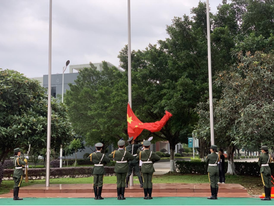 校团委书记王瑞老师在国旗下为同学们上了一堂别开生面的微团课。青马班学员代表韦馨惠同学在国旗下讲话中说到,“趁风华正茂之际,我们更应该以五四精神为不竭力量之源,树立远大人生追求与志向,筑造青春之梦。当前行的接力棒交到当代青年手中时,我们应该毅然挺起坚实的臂膀,在人民需要的时候挺身而出、迎难而上,用奉献绘就新时代青年的青春担当。”最后,升旗仪式在老师与同学举起手中的小红旗齐唱团歌中结束。