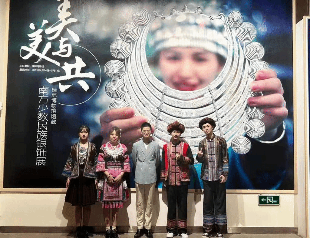 为弘扬中华优秀传统文化,培育社会主义核心价值观,铸牢中华民族共同体意识,展示我校学生风采,在壮族传统节日“三月三”到来之际,4月22日上午,校语委指导老师钟锟带领学生协助桂林博物馆完成“美美与共——桂林博物馆馆藏南方少数民族银饰展”的文物讲解活动。