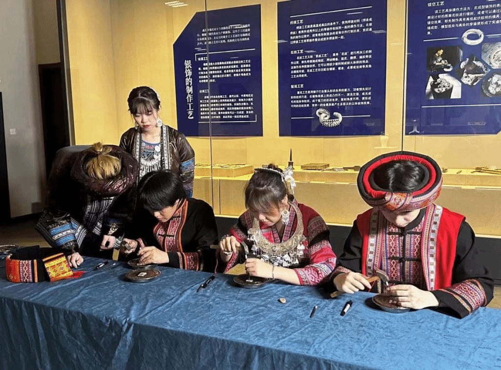 随后,校语委师生参与、体验银饰制作过程,深入了解少数民族银饰文化的内涵和传统工艺的精髓。