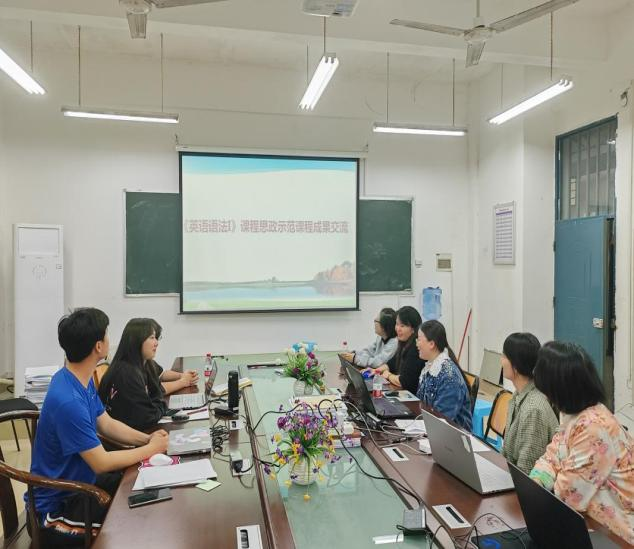 本次成果展旨在展示人文学院在课程思政方面的探索与实践成果,推动课程思政融入教学全过程,提高学生思想政治素养和综合素质。在成果展示现场,来自人文学院的《中国现代文学1》“课程思政”示范课程负责人周婕、《英语语法I》“课程思政”示范课程负责人唐茂妮、《英语阅读II》“课程思政”示范课程负责人蔡晓明、《中国文化概况》“课程思政”示范课程负责人欧炼芬分别围绕课程建设的举措、课程建设的成果以及课程建设中遇到的困惑作交流发言。