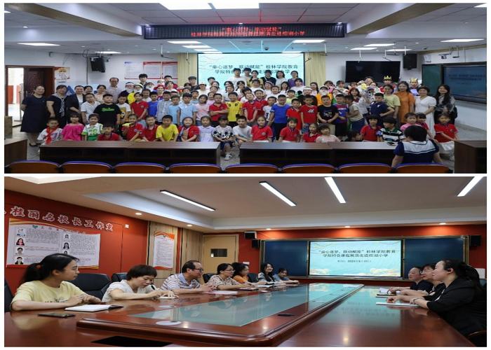 伴随花的芬芳,踏着歌的节拍,5月31日,教育学院院长彭超、副院长黄小玲以及学前教育、小学教育教研室师生一行携该院“童心逐梦,联动赋能”特色课程展演走进桂林市秀峰区榕湖小学,2020级学前教育和小学教育学生以手偶剧和儿童剧形式演绎孩子们喜欢的故事,激发阅读的兴趣,送上教育学院对小学生的“六一”儿童节的美好祝福。