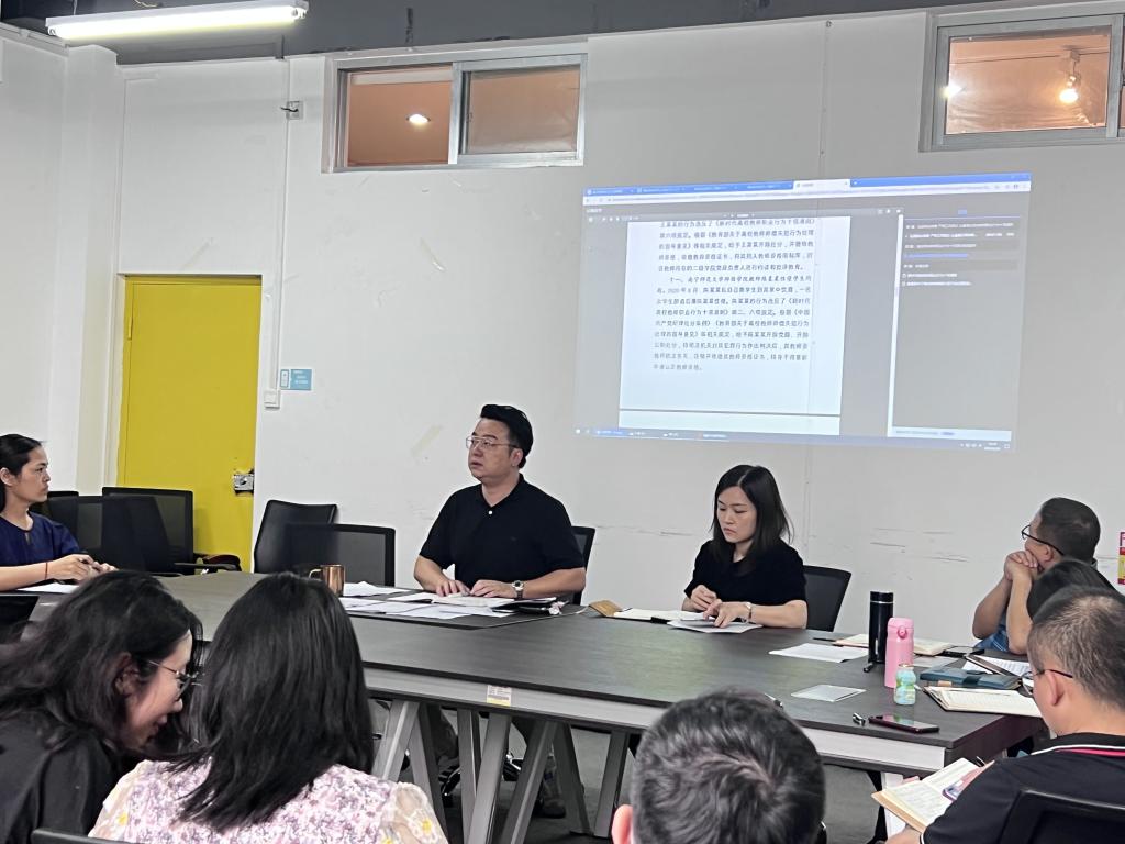 随后,会议重点围绕《桂林学院师德集中学习教育工作实施方案》对全院教职工进行了师德师风专项培训。邀请了法学教研室黄维娜老师对学院教职工进行师德师风法治教育宣讲,黄维娜老师带领与会人员系统学习了相关法律法规,并强调作为高校教师要提高教师法律意识和依法从教意识。