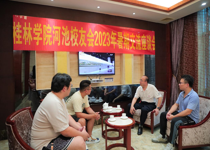 为进一步做好校友工作,凝聚校友力量,促进学校和校友共同发展,7月2日,教育学院党总支书记周杰一行赴河池金城江走访看望河池校友代表,并举行了河池校友座谈会。河池市广播电视台主持人、河池校友会会长韩鑫,河池市委编办(市绩效办)罗懿、广西巴马春源食品贸易公司黄秋文、河池市广播电视台记者牙举栋、2012级公共艺术专业张登飞等8位校友出席会议。