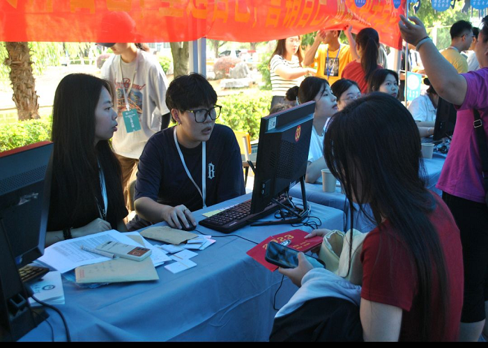 9月6日是教育学院2023级新生报到的日子,各项迎新工作忙碌而有序地展开。学校党委副书记、纪委书记、副校长邓志平及教育学院领导班子来到学院迎新现场,走访慰问工作人员及志愿者,并与新生及家长亲切交流。