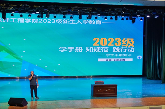 为形成优良的院风和学风,加快2023级新生校规校纪的学习,9月7日,管理工程学院在弘善讲堂开展“学手册 知规范 践行动”——《学生手册》解读入学教育专题讲座。管理工程学院党总支副书记汤靖主讲,学院2023级全体新生参加讲座。