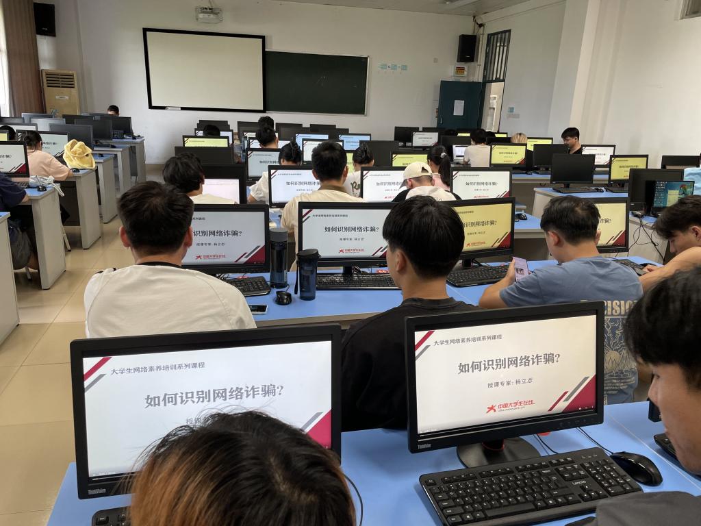 学生观看学习如何识别网络诈骗
