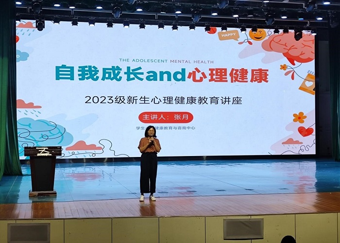 为了促进大学生健康发展,9月15日,教育学院于弘善讲堂开展“自我成长and心理健康”专题讲座。讲座由大学生心理健康教育与心理咨询中心张月老师主讲,教育学院2023级全体新生参加。