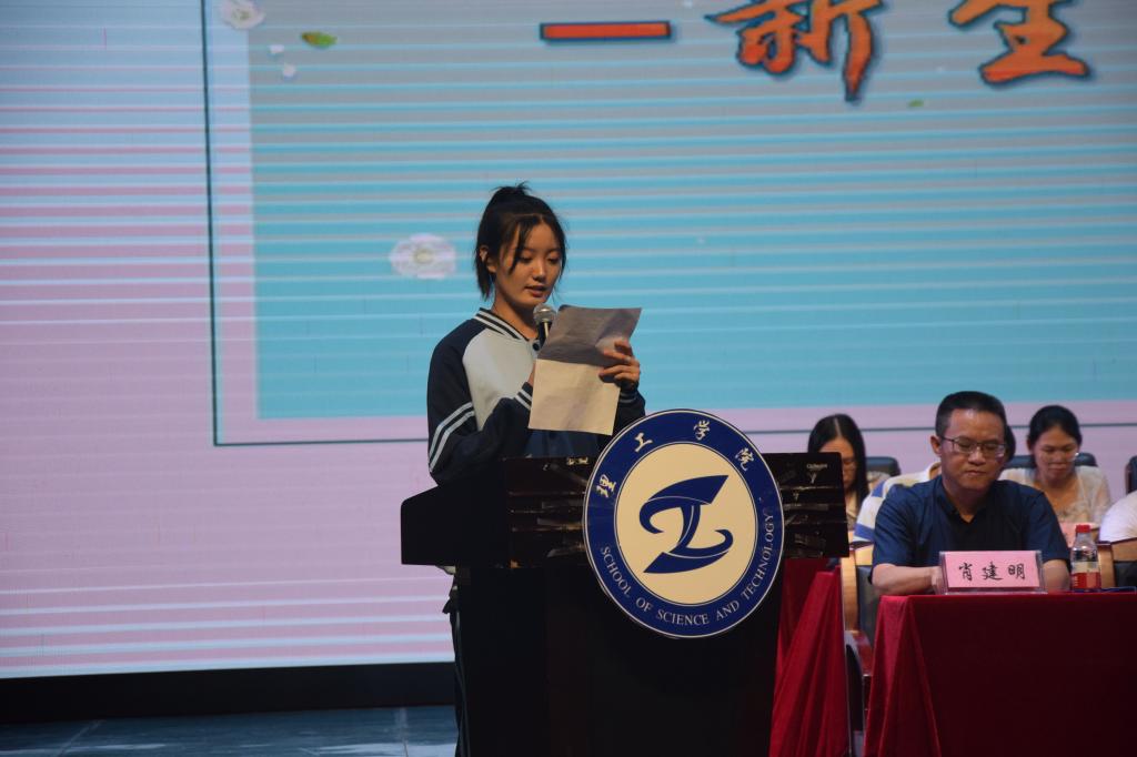 首先,理工学院院长李红波致辞,他对全体新生加入理工学院大家庭表示热烈的欢迎,介绍了理工学院的专业设置、建设概况,以及学院师生参与学科竞赛活动的获奖情况。同时李红波院长还向新生提出三点建议与希望:一是立志高远,胸怀“国之大者”;二是笃学力行,练就过硬本领;三是踔厉奋发,勇担时代使命。其次,计算机科学与工程教研室肖建明老师作为教师代表着重强调新生入学后要合理规划,夯实专业基础,锻炼专业能力,并给出大学为人处世的建议。再次,2021级电子信息工程专业赵度稳、2023级计算机科学与技术专业李思雨分别作为老生和新生代表从各自身份出发,结合在校经历发表自己的感言。