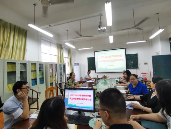 为进一步加强汉语言文学专业各门课程的融合,全面了解学生的学习情况及教师资格证考试情况,以便更有针对性地推进教育教学工作,人文学院于9月20日在至善楼2108举办新学期中文类专业教资考试工作专场研讨会。人文学院汉语言文学专业全体教研室主任、辅导员教师及中文教师教育教研室全体教师参加会议。会议由人文学院副院长陈锴主持。