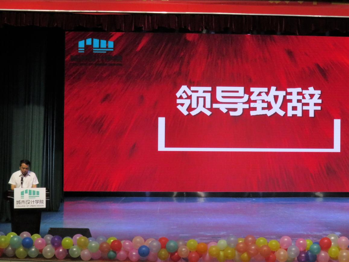 环境设计教研室张奇作为教师代表发言,他为新生们今后在城市设计学院的学习和生活提出四点希望:一是要明确目标;二是要有实现目标的思路;三是要珍惜当下,付诸行动,并持之以恒;四是要分析结果,进行整理并总结。他希望同学们学会自我约束、自觉学习,保持良好健康的身心,做一个诚实守信的大学生。