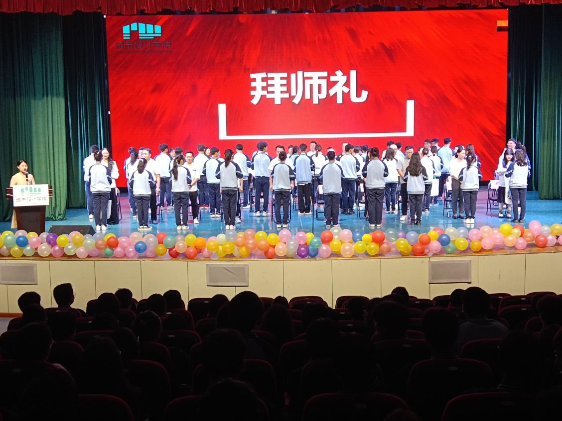 在拜师仪式上,43名新生代表上台逐一向老师们敬茶,老师们则向新生回赠了勤学礼。场下全体新生起立,集体向老师鞠躬并整齐说道“老师,您辛苦了”!