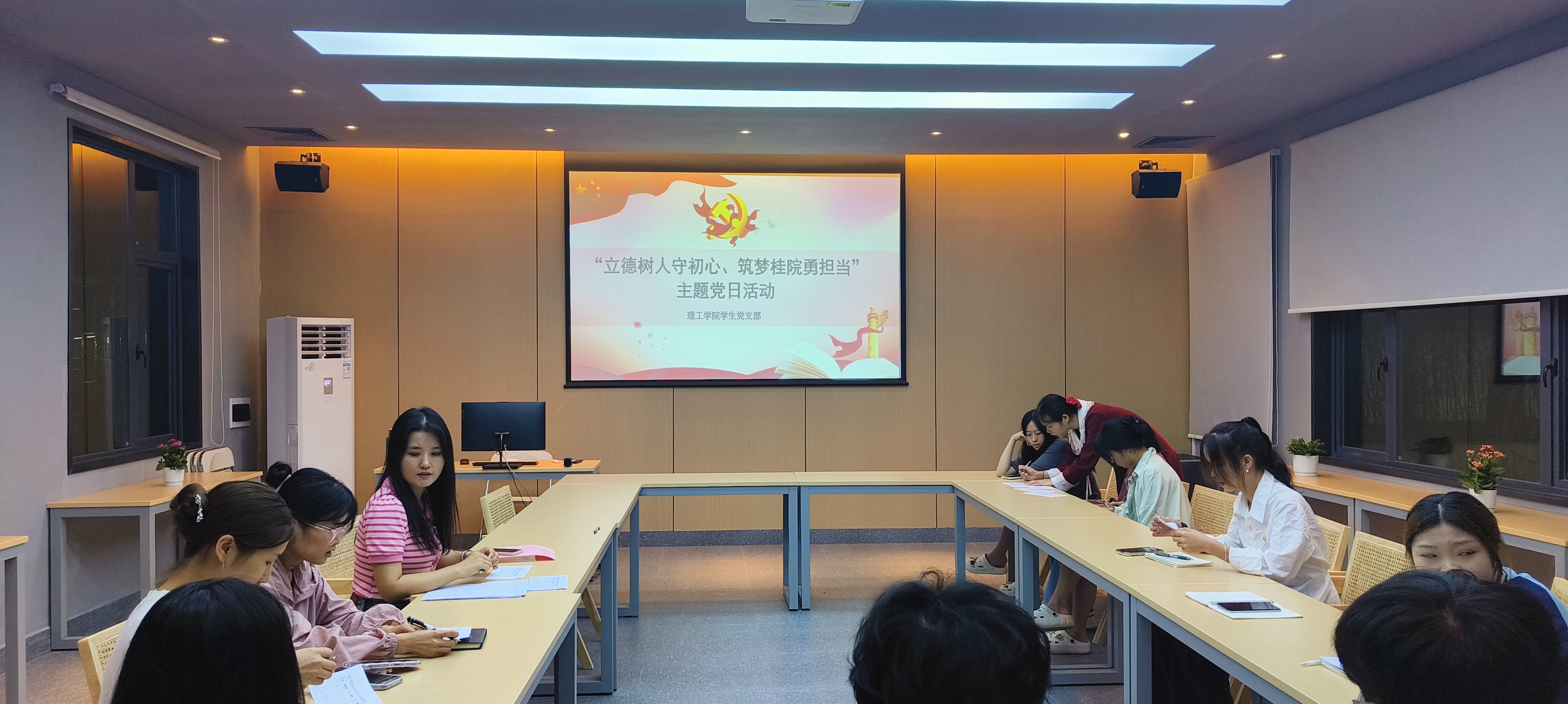 为持续推动用习近平新时代中国特色社会主义思想武装头脑,指导实践,落实立德树人根本任务,理工学院学生党支部联合学生社区党支部于9月27日晚上在一站式服务中心开展“立德树人守初心,筑梦桂院勇担当”党日活动。理工学院学生党支部、学生社区党支部全体学生党员参加活动。