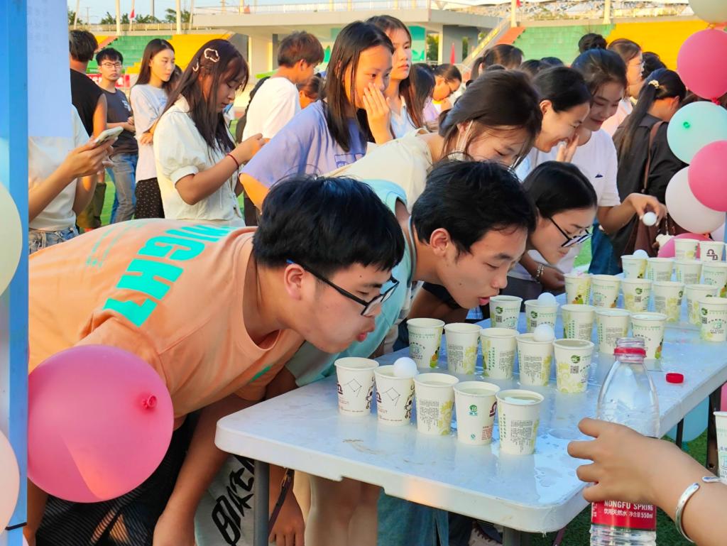 活动的第一个环节是“游园妙趣,篝火狂欢”,通过弹瓶盖、眼疾手快、吹乒乓球等多个联动小游戏开启了中秋篝火晚会的序幕。当暮色渐浓时,随着操场上的电子篝火被点亮,篝火晚会正式开始。开场舞蹈《Boomfire》热闹的歌舞声唤醒了黑夜,充满力量感和艺术感的舞姿瞬间燃起了现场的气氛;节目《爱我中华》和《蓝色游吟》更是展现华夏之精神和中国舞蹈之美。在欢声笑语之中,同学们感受到了浓浓的欢乐气氛和桂院大家庭的温暖。最后,本次晚会在歌曲《仰望星空》中落下帷幕。