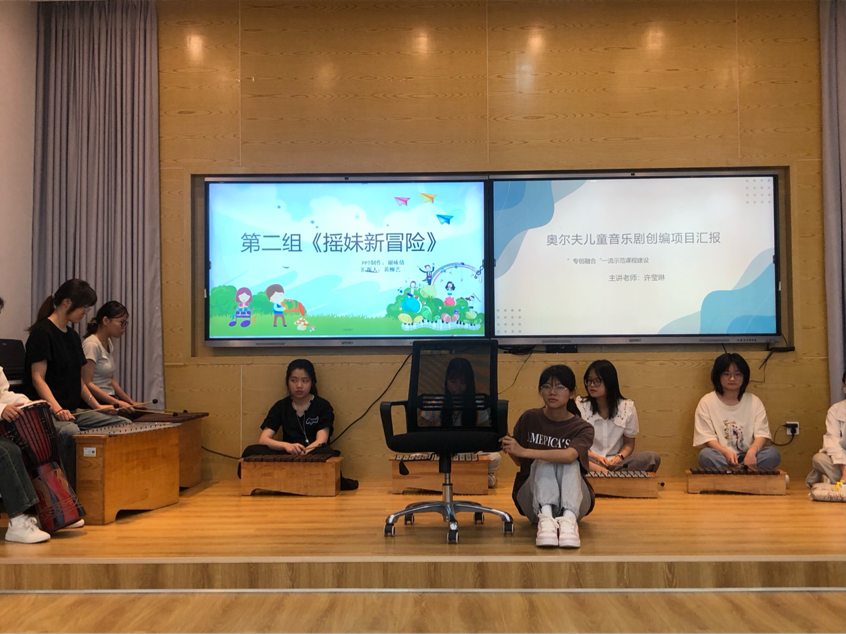 近日,教育与音乐学院举办《奥尔夫儿童音乐活动创编》课程“专创融合”校级一流课程建设活动。活动特邀桂林市嘉歌儿艺术培训机构谢尧校长与阳朔镇幼儿园黄春丽园长在线参与,对学生奥尔夫儿童音乐剧创编项目策划汇报及展演进行专业点评与指导。